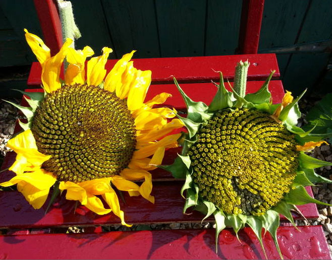 Two sunflower heads in the sun
